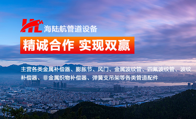 江苏海陆航管道设备有限公司( 原泰州恒光管道设备制造厂 ),是专业从事计划出产各类金属补偿器、膨胀节、风门、金属波纹管、四氟波纹管、波纹补偿器、非金属织物补偿器、弹簧支吊架等各类管道配件的出产厂家。本厂具有各种成型设备、自动化波纹管出产线和完善的试验、查看设备,并有一批精干的科研及出产部队,严格依照GB/T12777-2008和美国《EJMA》标准以及GB/14525-2008标准计划出产、制作、查验。实施全方位全过程的质量控制。产品广泛应用于石油化工、矿工操练、航工航天、船只码头、电力电子、供热管道等领域。
